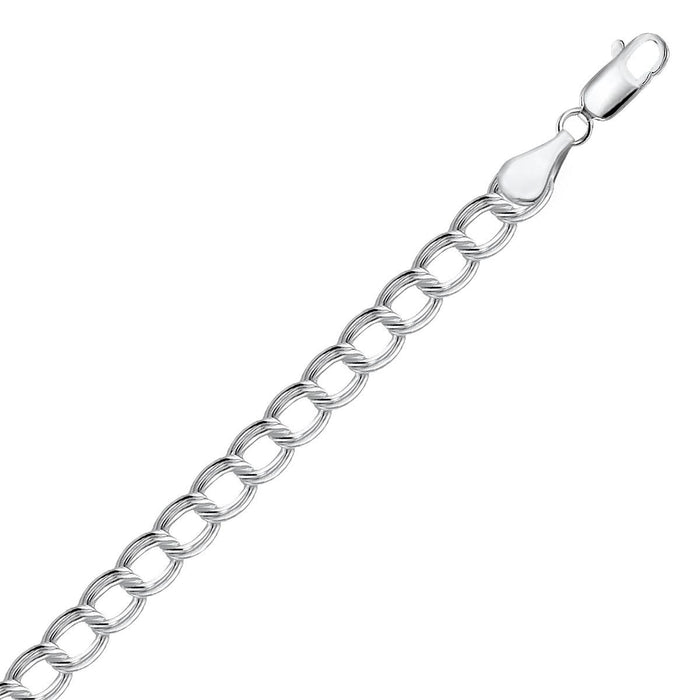 Sterling Silver Small Ridged Circular Chain Bracelet with Rhodium Plating.