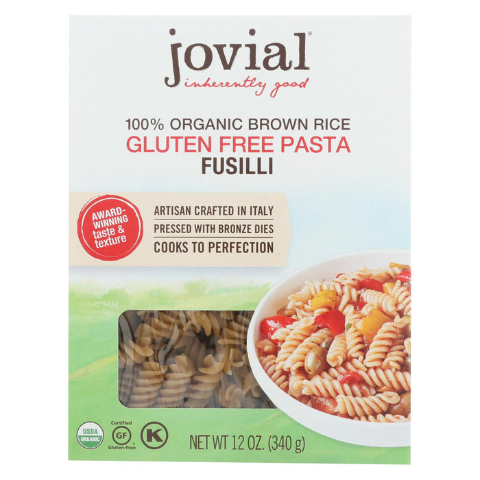 Jovial brown rice fusilli is a certified gluten-free artisan pasta with award-winning taste and texture. Each serving of our certified usda organic brown rice flour pasta is made with 100% whole grains grown exclusively in italy. Our brown rice fusilli comes in one 12 oz. Package and is certified kosher.
