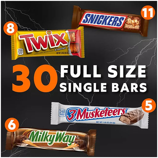 View full detailsIndulge in a variety of delicious chocolate flavors with Mars Chocolate Candy Bars! This full size pack includes 30 bars for endless snacking optio...
