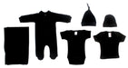 Black Receiving Blanket (100% Cotton), Black Interlock Short Sleeve Onezie (100% Cotton), Black Interlock Sleep & Play (Small 0-3M) (100% Cotton), Black Interlock Short Sleeve Lap T-Shirt (100% Cotton), Black Baby Cap (100% Cotton), Black Knotted Baby Cap (100% Cotton)