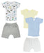 White Shorts (100% Cotton), Heather Grey Shorts (100% Cotton), Boys Printed Variety Short Sleeve Lap T-shirts - 3 Pack (100% Cotton)
