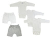 White Shorts (100% Cotton), Heather Grey Shorts (100% Cotton), White Longsleeve Onezie 3 Pack (100% Cotton)