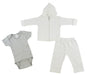 White Hoodie (100% Cotton), White Pants (100% Cotton), Grey Interlock Short Sleeve Onezie (100% Cotton)