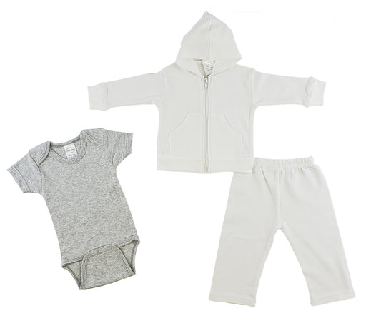 View full detailsBambini Onezies, Sweat Pants & Hoodie Set100% Cotton InterlockSizes: NB, S, M, LWhite Hoodie (100% Cotton), White Pants (100% Cotton), Grey In...