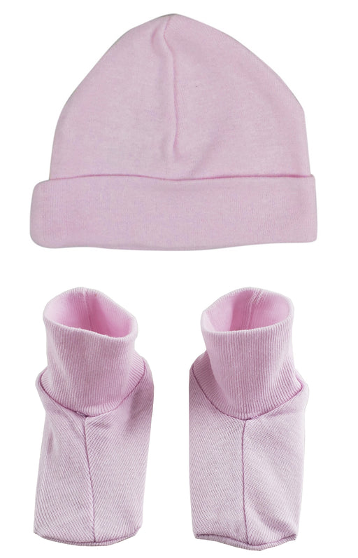 Infant Cap & Booties Set100% Cotton 1x1 Rib KnitColors: Pink and BlueSize: Newborn1 Per Pack