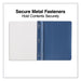 Traditional clear front report cover offers a full view of your title page. Three prong fasteners hold letter size punched sheets. Leatherette embossed paper back cover.