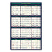 Versatile yearly calendar for business or academic/fiscal use. Heavy-laminated write-on/wipe-off surface easily erases with a damp cloth for quickly changing plans. Reversible design with one side arranged in business quarters and the other in academic/fiscal quarters, both in vertical format. Attractive four-color printing; holidays printed in red to stand out. Includes one black, water-soluble marker and hanging tabs. Calendar is printed on 100% recycled paper.