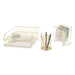 Package Includes: (1) Metal Wire Letter Sorter, 3.95" x 5.15" x 6.15"; (1) Metal Wire Paper Tray, 10" x 12.3" x 2"; (1) Pencil Cup 2.75" x 2.75" x 4.4"