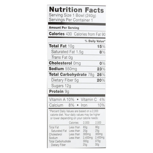 View full detailsPer serving: 200 calories, 0g sat fat (0%dv), 490mg sodium (21%dv), 1g total sugars. At near east, we're inspired by how well the world eats. Our j...