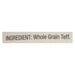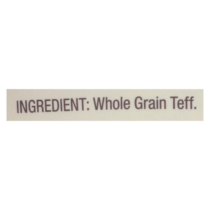 100% whole grain. 35 or more per serving. 100% of the grain is whole grain. Wholegrainscouncil.org. Tested and confirmed gluten free in our quality control laboratory. Non gmo project verified. Nongmoproject.org. An employee-owned company. To your good health. - bob moore. Our whole grain teff flour is made from the smallest grain in the world. This gluten free ancient grain originated in north africa and has a light, nutty flavor. Use it to make injera, the traditional ethiopian flatbread, or in baked goods like cookies, brownies and muffins. You can see our quality. Dear friends, at bob's red mill, we take great pleasure in bringing wholesome, delicious foods like whole grain teff flour to your table. We search the world for unique and unusual heirloom grains that you can use to forge new culinary adventures - right in your own kitchen! rely on us for a wide variety of baking flours, grains and mixes you'll feel good about eating. To your good health, - bob moore. Nongmoproject.org. Wholegrainscouncil.org. Bobsredmill.com. For more information and recipes, visit bobsredmill.com. Resealable package.