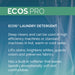 Hypoallergenic ECOS PRO laundry detergent deep cleans, guards colors, and can be used in high-efficiency machines or standard machines in hot, warm, or cold water. Launder clothes, sheets, towels, and linens without disintegrating fabric fibers or fading colors; leaves laundry soft and comfortable. The pH balanced formula is made using sustainable, plant-powered surfactants. Made without dyes; gray water and septic safe. Recognized by the US EPA's Safer Choice and USDA's BioPreferred program. Not tested on animals. Manufactured in a facility that is LEED Zero Carbon, LEED Zero Waste, and LEED Zero Energy Certified.