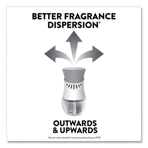 Leave a lasting impression on guests and ensure a consistent experience with Air Wick Scented Oil Refills with Essential Oils. Keep supply rooms stocked with the pleasant scents your guests come to associate with your business. Get up to 60 days per refill, on the lowest warmer setting, of natural-smelling fragrance with essential oil-infused formulas. Easily refill the Air Wick plug-in warmer by unscrewing the cap and inserting the refill until it clicks. Adjust the warmer settings to ensure the optimal fragrance for each room. Enhance entrances, common areas, offices, breakrooms and guest rooms with pleasant scents.