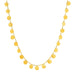 This necklace features a shiny, blinking array of polished dangling gold discs. Necklace adjusts from 14 inches to 16 inches in length and closes with a lobster clasp.