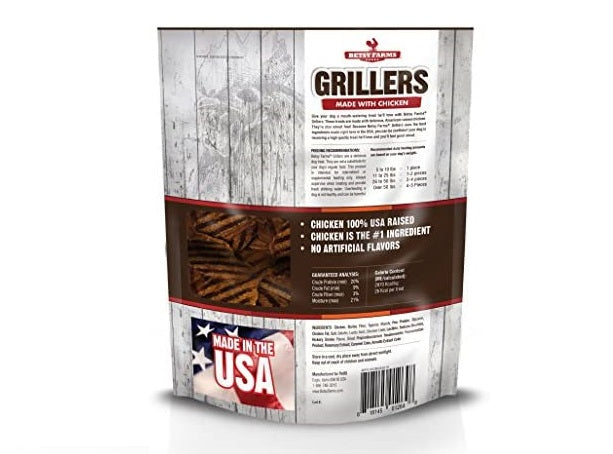 - Betsy Farms Grillers Dog Treats are made from 100% American-raised chickens