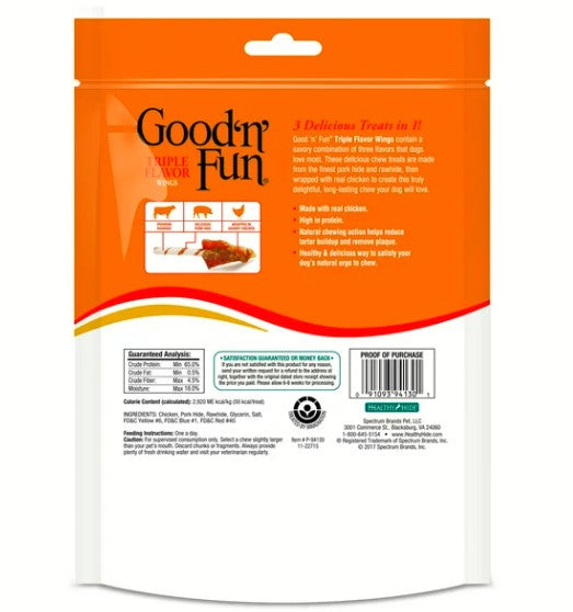 Dog snacks Triple flavor treats Wings snack Good 'n' Fun treats All-natural ingredients 12.0 oz package Delicious flavors Long-lasting chew Suitable for all dogs High-quality dog treats
