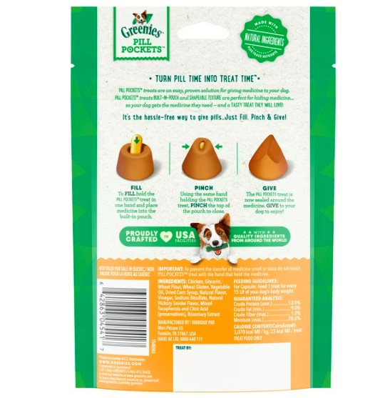 GREENIES PILL POCKETS for Dogs Capsule Size Natural Soft Dog Treats, Chicken Flavor, 7.9 oz. Pack (30 Treats)