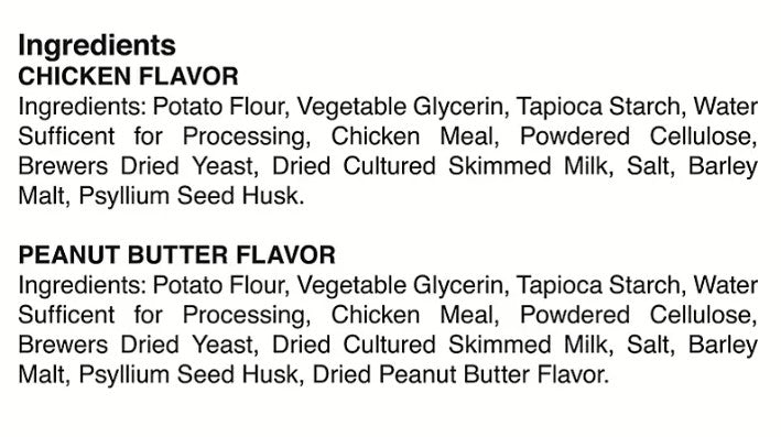 • 15 Chicken Flavors & 15 Peanut Butter Flavor