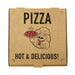 All-Kraft pizza boxes that keep pizza hot and ready for customer pick-up, delivery or take out. Boxes are B-Flute with four top vents. Pizza boxes are branded with a stock Hot & Delicious graphic to align with that traditional pizzeria feeling.
