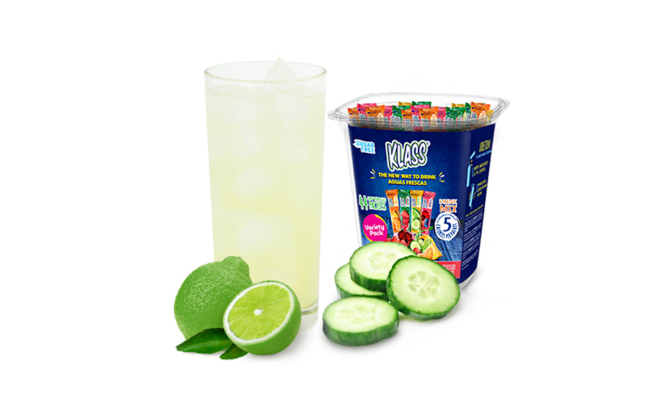 Klass Aguas Frescas, Fruit Variety Pack, Sugar Free Drink Mix , On-The-Go! Powdered Drink Mix (44 Count Powder Stick Packs) 5 Calories Per Packet- Shake it up! The new way to drink Aguas Frescas. Enjoy a low-calorie, sugar free experience with 44 individual packets of premium Aguas Frescas mix. With just 5 calories per packet, it's a guilt-free way to enjoy a delicious beverage.