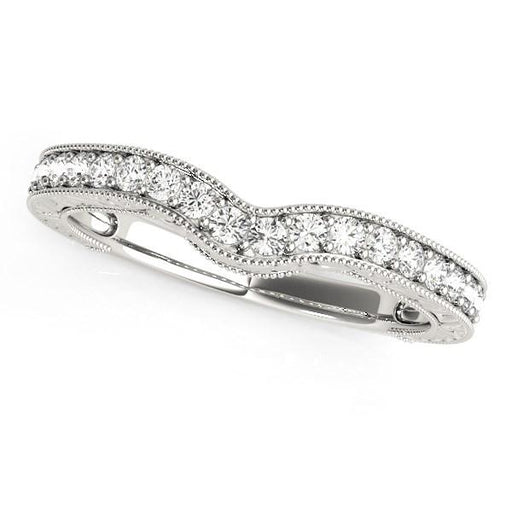 14k White Gold Bead Border Curved Diamond Wedding Ring (1/4 cttw).