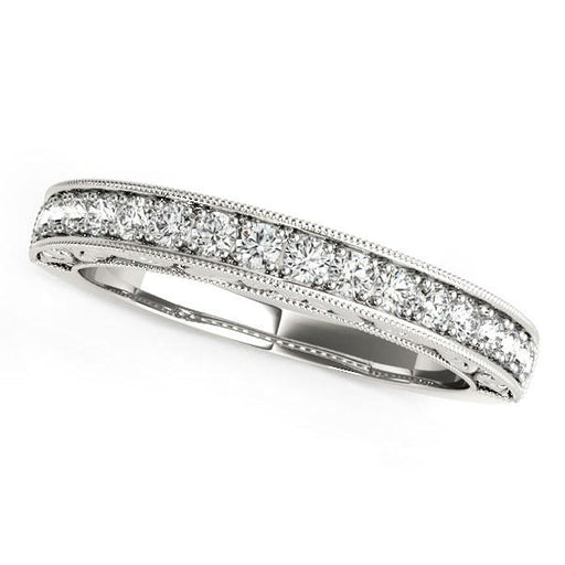 14k White Gold Antique Style Diamond Wedding Band (3/8 cttw).