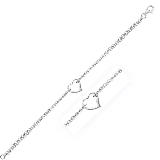 14k White Gold Cable Chain Anklet with Open Heart Station.