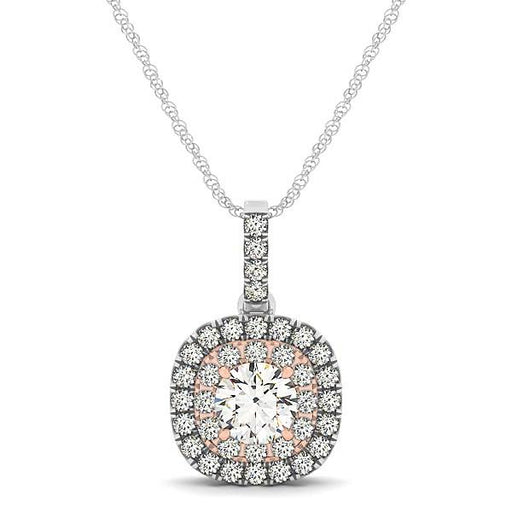 14k White And Rose Gold Cushion Shape Halo Diamond Pendant (1/2 cttw).