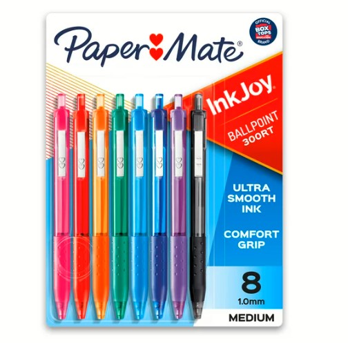 View full detailsDescription The Paper Mate InkJoy Retractable Ballpoint Pen offers 1mm precision for smooth and clean lines. The 8-pack of assorted colors provides...