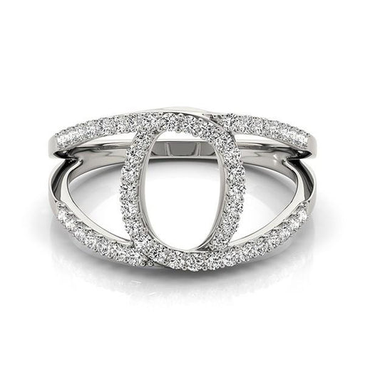 Brilliant round diamonds are pave set on the looping style dual band of this enchanting polished ring. Crafted in high-quality 14k white gold.