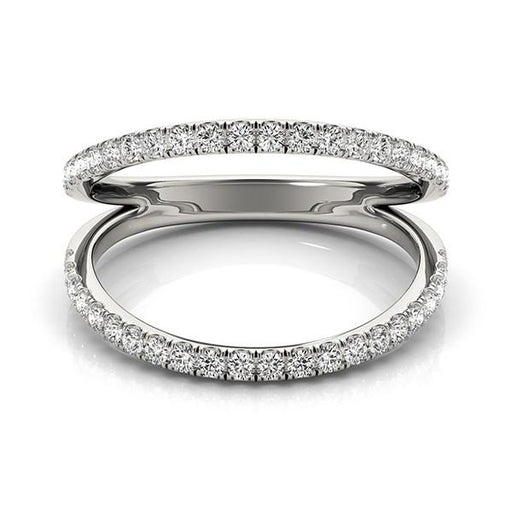 View full detailsShowcasing, a floral motif cut-out design head this diamond ring is wonderfully stylish. Crafted in 14k white gold and features a dual-band look.