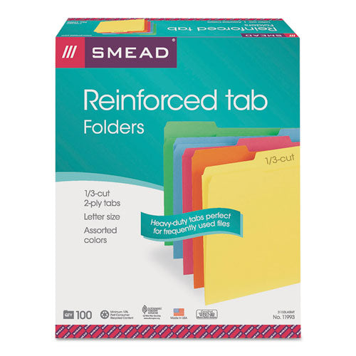 Reinforced Top Tab Colored File Folders, 1/3-cut Tabs: Assorted, Letter Size, 0.75" Expansion, Assorted Colors, 100/box.
