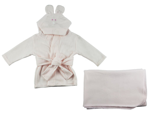 Girls Infant Robe, Hooded Towel And Washcloth Mitt - 3 Pc Set.