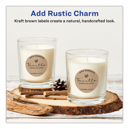View full detailsKraft brown round labels are ideal for branding and promotional applications. Print-to-the-edge feature allows you to extend colors right to the ed...