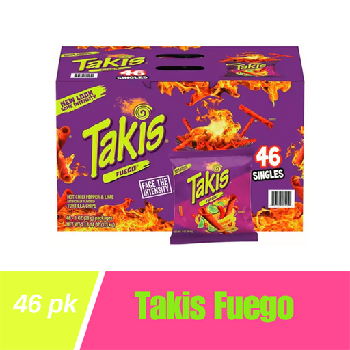 Description Treat yourself to a snack like no other, with a 46 pack of Takis Fuego Rolled Tortilla Chips! Perfect for any occasion, these 1 oz. chi...