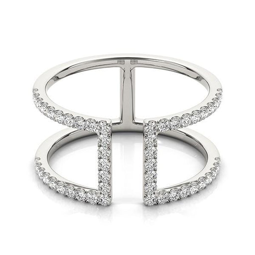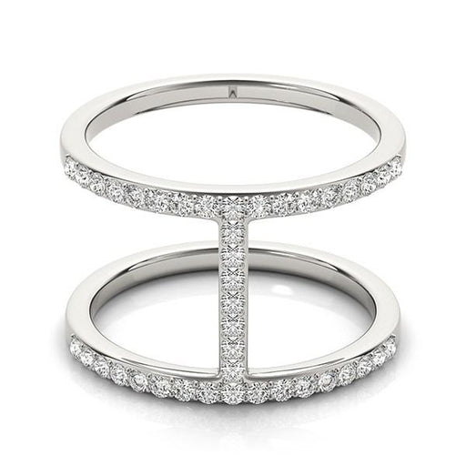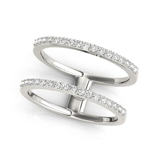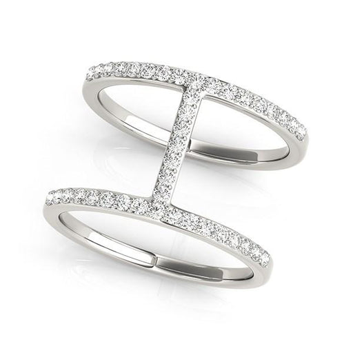 Delightfully crafted with a dual-band design and parallel bar section, this diamond ring is quite captivating. Crafted in 14k white gold.
