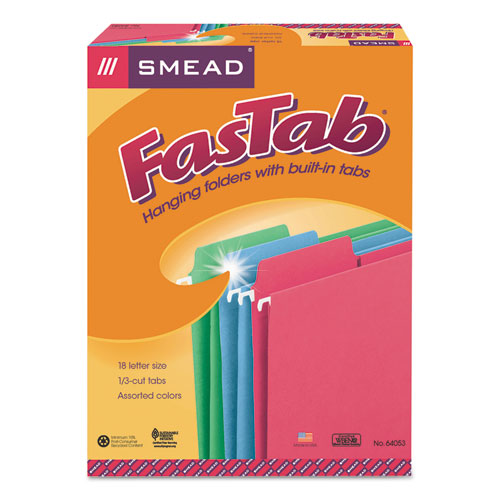 Fastab Hanging Folders, Letter Size, 1/3-cut Tabs, Assorted Earthtone Colors, 18/box.