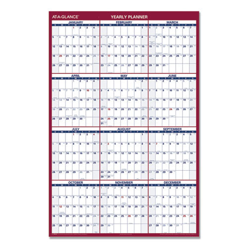 Horizontal Reversible/erasable Wall Planner, 36 X 24, White/blue Sheets,12-month (jan To Dec): 2025
