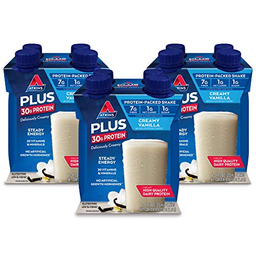 Atkins Creamy Vanilla PLUS Protein Shake, 30g Protein, Low Glycemic, 1g Net Carb, 1g Sugar, Keto Friendly It's the perfect low-carb indulgence to h...