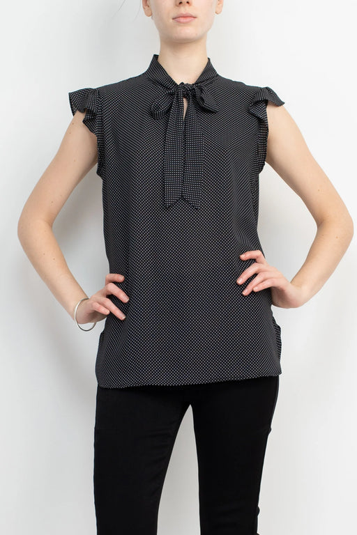 Counterparts Tie Neck Flutter Sleeve Mini Polka Dot Print Crepe Top