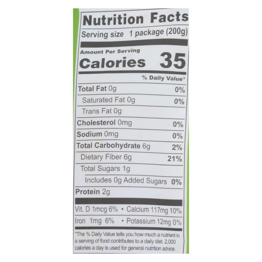 View full detailsValues per 200 g pack: 35 calories energy; 0 g total fat; 0 g saturated fat; 0 mg sodium; 1 g total sugars. 6 g carbs per pack. Vegan. Gluten-free....