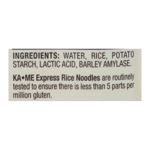 Gluten free. Fresh cooked noodles. Heat and serve. 2 minutes wok or skillet. 90 seconds microwave. Ka-me hong kong express rice noodles. Hong kong ...