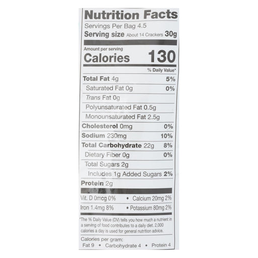 View full detailsMilton's baking company's crispy sea salt baked crackers are gluten-free, vegetarian, non-gmo crackers for snacking, stacking and dipping. Each 4.5...