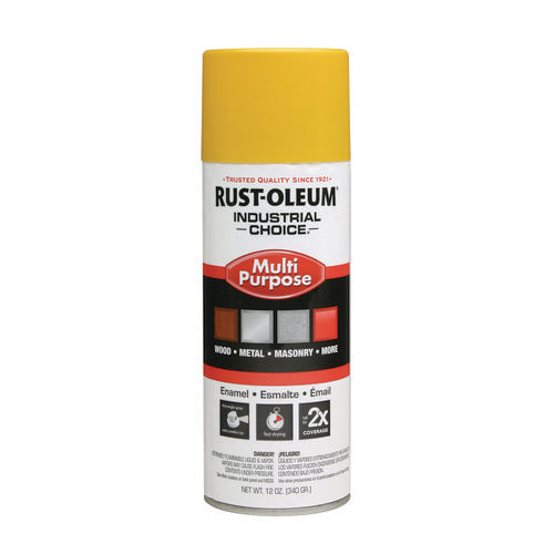 Industrial Choice- 1600 System Multi-purpose Enamel Spray Paint, Flat Safety Yellow, 12 Oz Aerosol Can, 6/carton