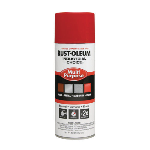 Industrial Choice- 1600 System Multi-purpose Enamel Spray Paint, Flat Safety Red, 12 Oz Aerosol Can, 6/carton