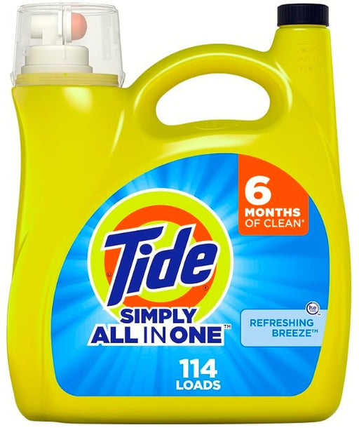 View full detailsTide Simply's Liquid Detergent in a Refreshing Breeze scent will give you fresh results after every wash - 114 loads! Transform your laundry routi...