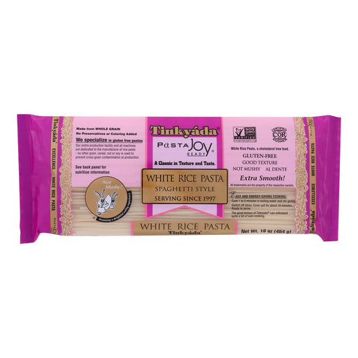 View full detailsTinkyada pasta joy ready spaghetti style white rice pasta has an extra smooth texture. Kosher certified, this pasta is made from white rice only an...