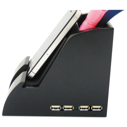 View full detailsDesk organizer with iPhone®/cell phone holder provides storage compartments for small knick-knacks as well as pen and pencil holders. The smartphon...