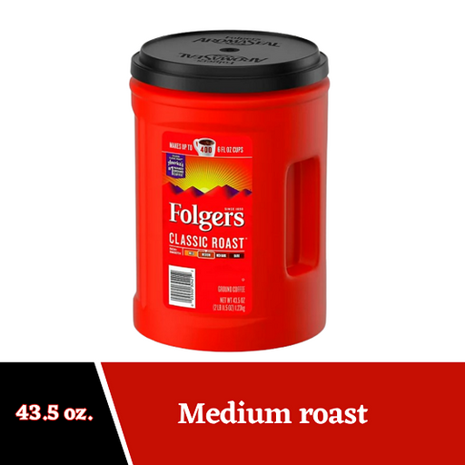 View full detailsAbout this item Folgers Classic Roast Ground Coffee 43.5 oz. Highlights Medium-roast, fine ground coffee Made with mountain-grown beans 100% pure...
