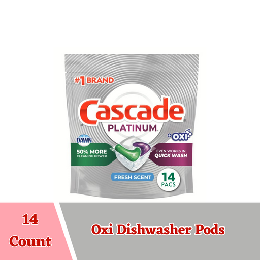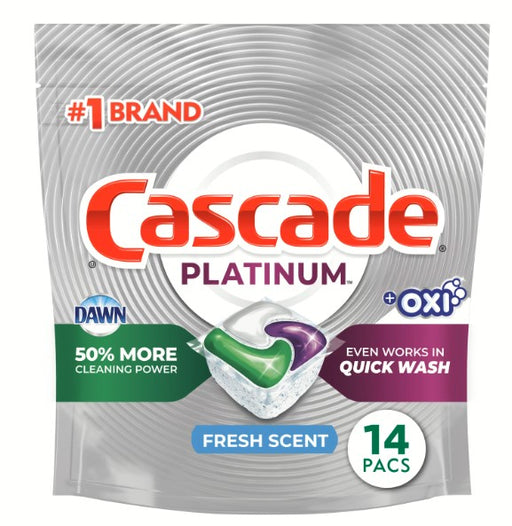 Description Cascade Platinum + Oxi ActionPacs Dishwasher Detergent Pods offer powerful action against stuck-on food and odors. These detergent pods...