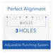 The wide grip, soft-touch lever makes punching large quantities 50% easier than with standard desktop punches. Top-quality cutting action with patented pin technology delivers clean and precise holes. Punch heads adjust for two- or three-hole punching; adjustable up to seven holes (additional heads sold separately). Multiple hole placements offer exceptional flexibility. Lever locks down for space-saving convenience. Paper-size adjustable. Pull-out tray for easy chip disposal. Durable metal construction.